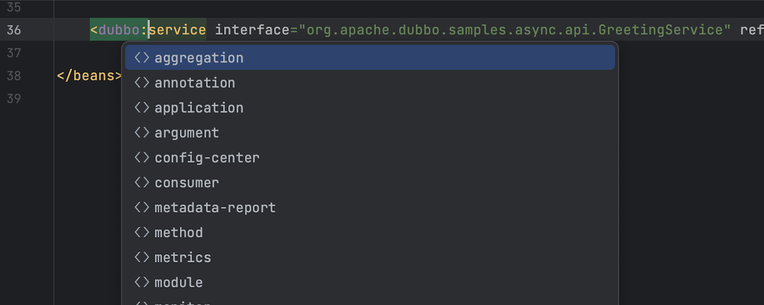 我们实现了一个集成 Apache Dubbo 的新专属插件,作为 IntelliJ IDEA 对 Spring 支持的一部分提供该框架的功能。 您可以从 JetBrains Marketplace 下载这个插件,或通过 Settings/Preferences | Plugins(设置/偏好设置 | 插件)直接在 IDE 中安装。