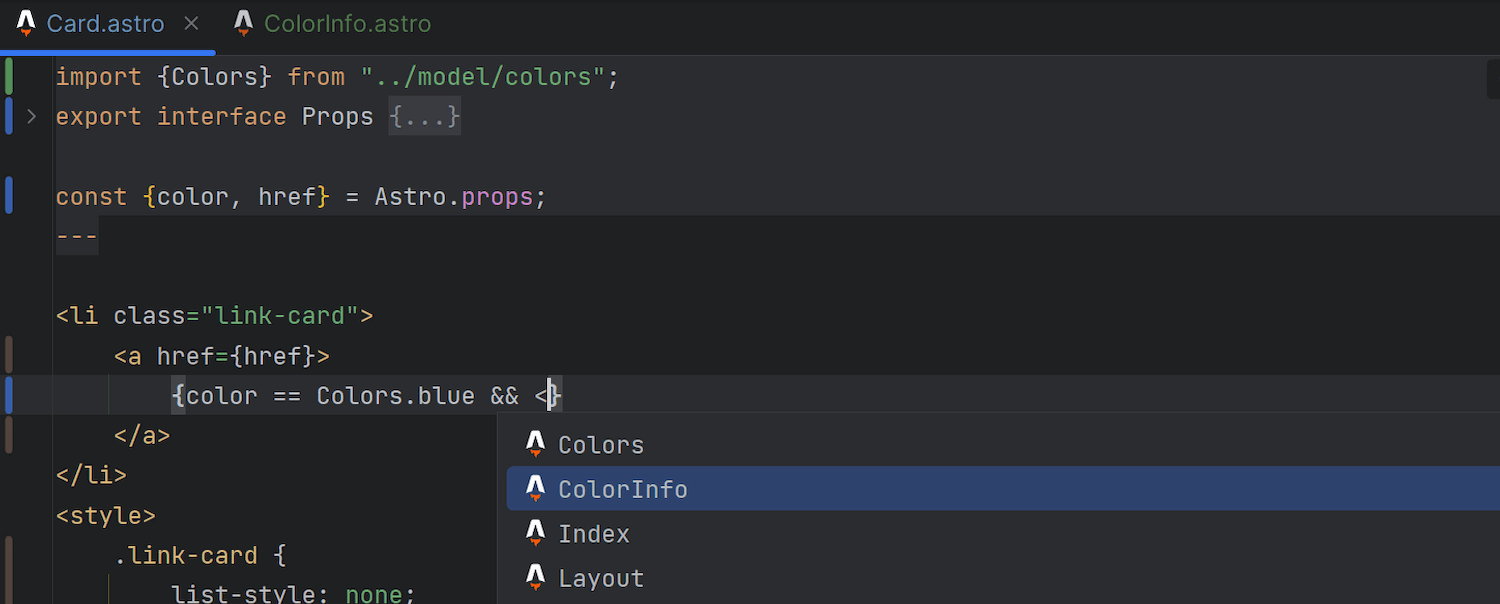 我们在 Vue 模板中添加了 TypeScript 支持。 它会在您将 script 标记中的 lang 特性设为 ts 时启用。 此前,无论 script 标记中的 lang 特性如何,使用的都是 JavaScript。 IntelliJ IDEA 现在将提供对内联转换的支持、改进的类型收窄,并在 Vue 单文件组件模板的快速文档中提供正确的推断类型信息。