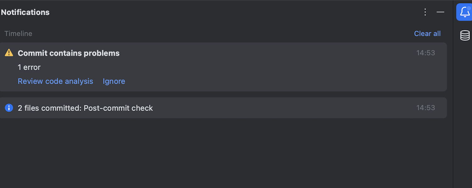 我们重做了 Git 和 Mercurial 提交检查的行为,旨在加快整个提交流程。 检查将在提交之后且推送之前在后台执行。