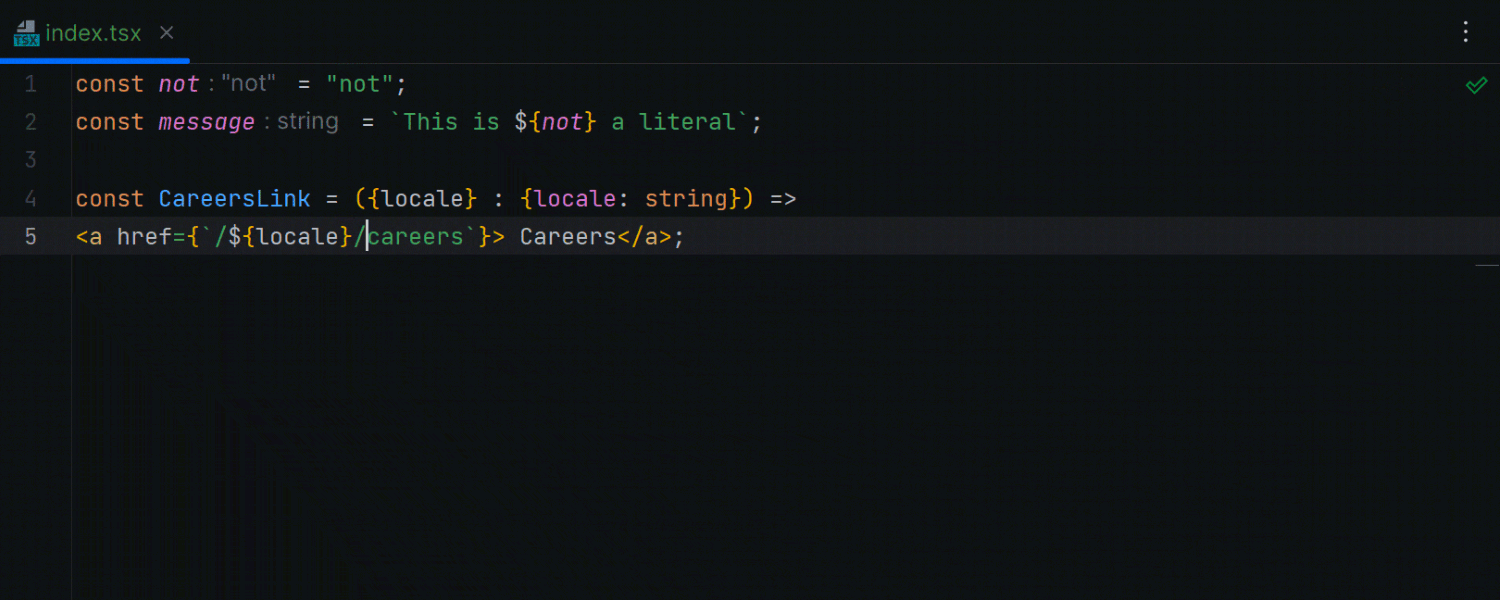 现在,IntelliJ IDEA 在您输入 ${ 时会自动将带单引号或双引号的字符串转换为模板字面量。 这适用于原始字符串以及 JSX 属性。