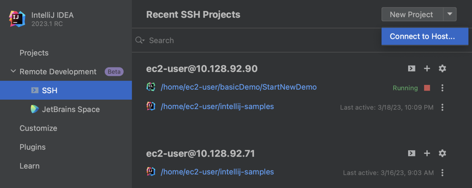 最近的项目现在存储在主机而不是客户端上。 即使您从不同的客户端连接,这也将准确提供最新信息。 我们还添加了更多实用选项,例如选择在主机上使用的 IDE 版本。