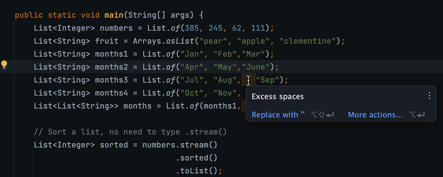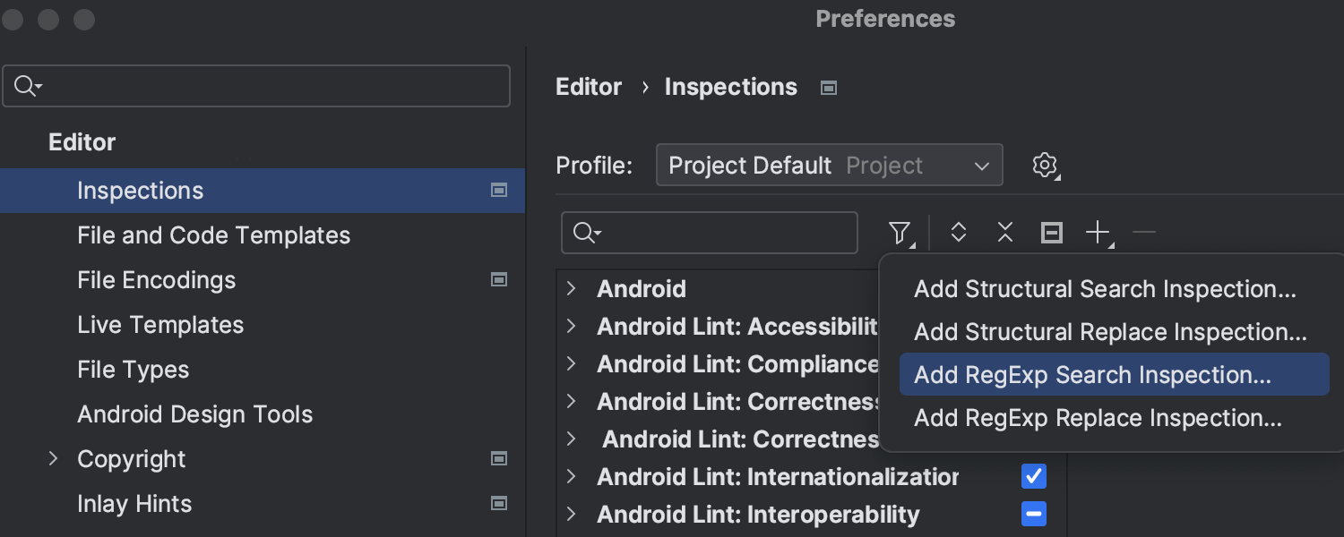 借助 IntelliJ IDEA 2023.1,您可以使用正则表达式创建自己的搜索和替换检查。 这些检查对于高亮显示基于样式或基于格式的问题特别实用。 在这篇博文中了解详情。