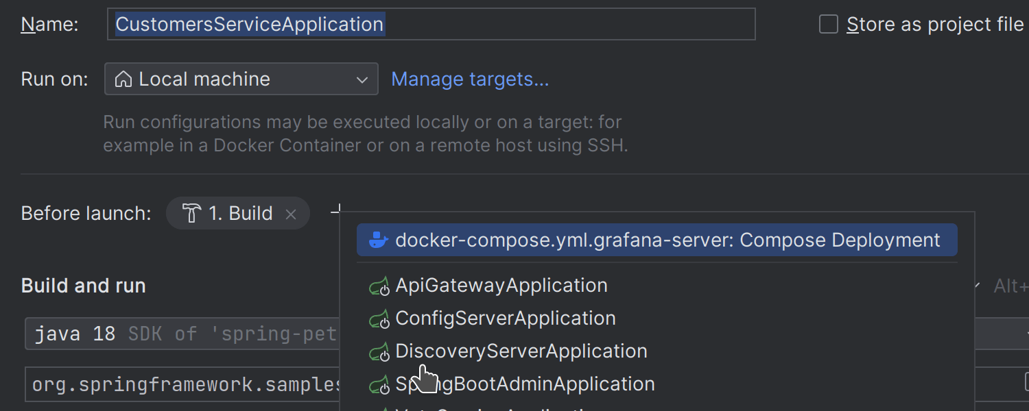现在,可以将 Docker 运行配置指定为 Before Launch(启动前)任务,从而在另一个配置之前运行。 IDE 将等待当前运行的容器恢复正常,然后再启动下一个运行配置。 要将 Docker 运行配置放入队列中,首先创建配置,然后通过 Modify options | Add before launch task | Run configuration(修改选项 | 添加启动前任务 | 运行配置)将其添加到相关容器中。