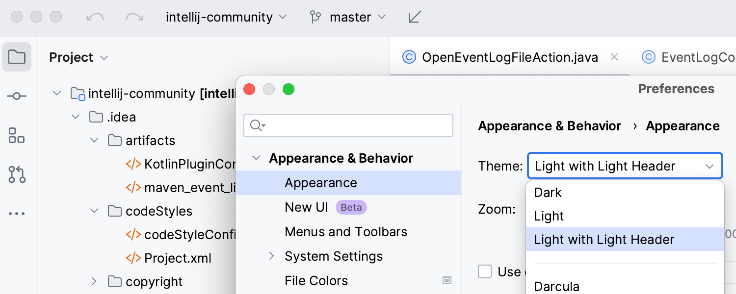 在 v2023.2 中,我们通过引入替代的 Light with Light Header(带有浅色标题的浅色主题)选项提升了浅色主题的用户体验,该选项可为窗口标题、工具提示和通知气球提供匹配的浅色。