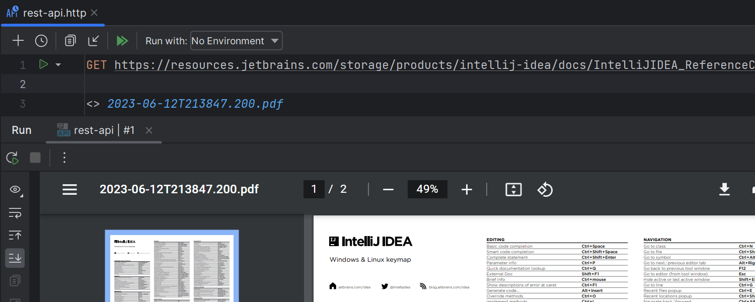 IntelliJ IDEA 现在能够在 HTTP 客户端的请求结果中显示 PDF 和 HTML 文件的预览。