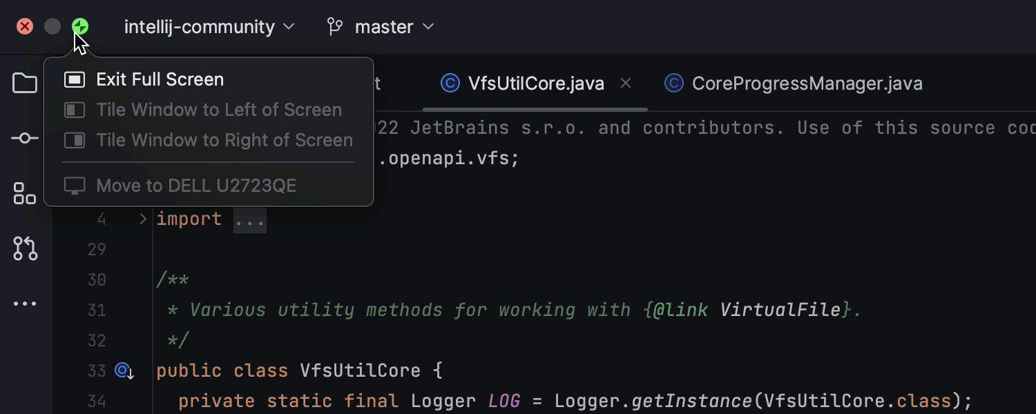 在 macOS 上以全屏模式使用新 UI 时,窗口控件现在将在主工具栏上显示,而不是像以前一样在浮动栏上显示。