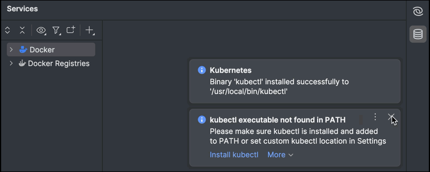 开始使用 Kubernetes 插件(现已与 IntelliJ IDEA 捆绑)时,您可能需要安装 kubectl 和/或 Helm。 如果您的计算机上还没有,IDE 将为您自动安装。