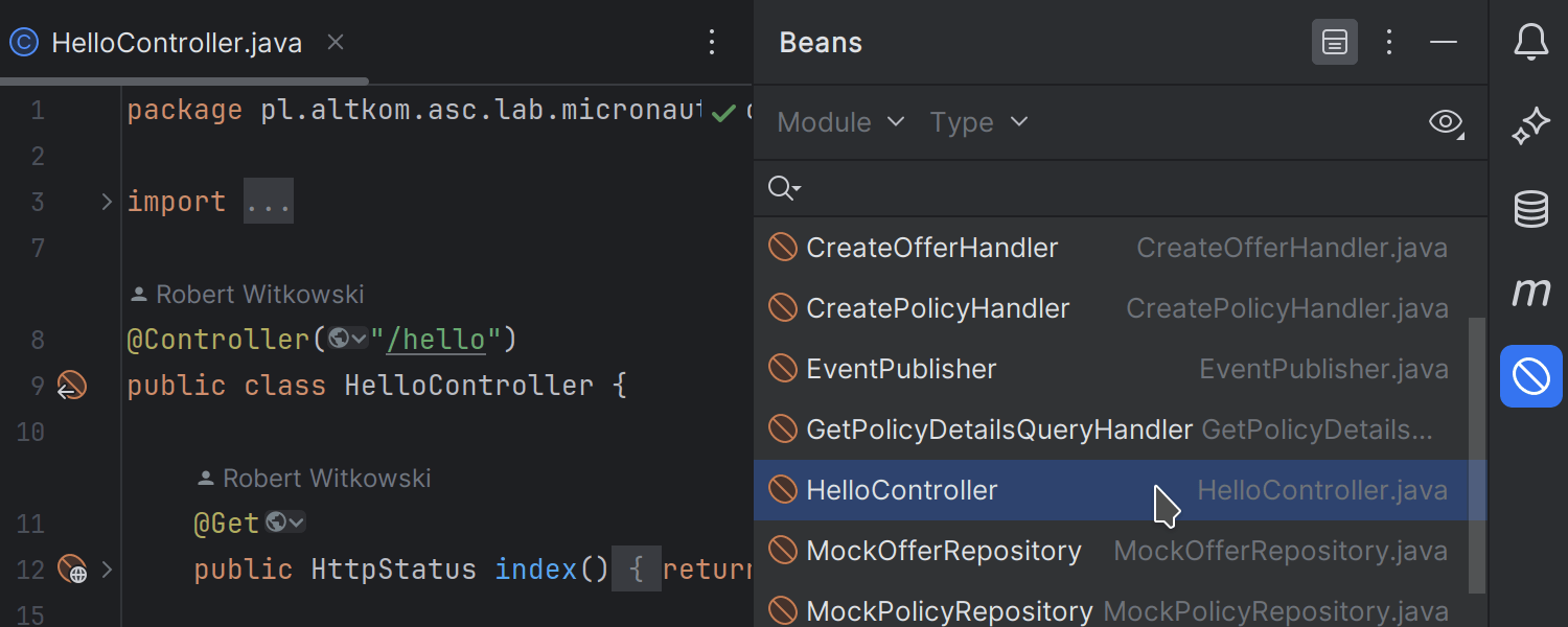 除了 Spring 组件之外,Beans(Bean)工具窗口现在还包括 Quarkus 和 Micronaut,提供了项目 Bean 配置的全面且整洁的概览。