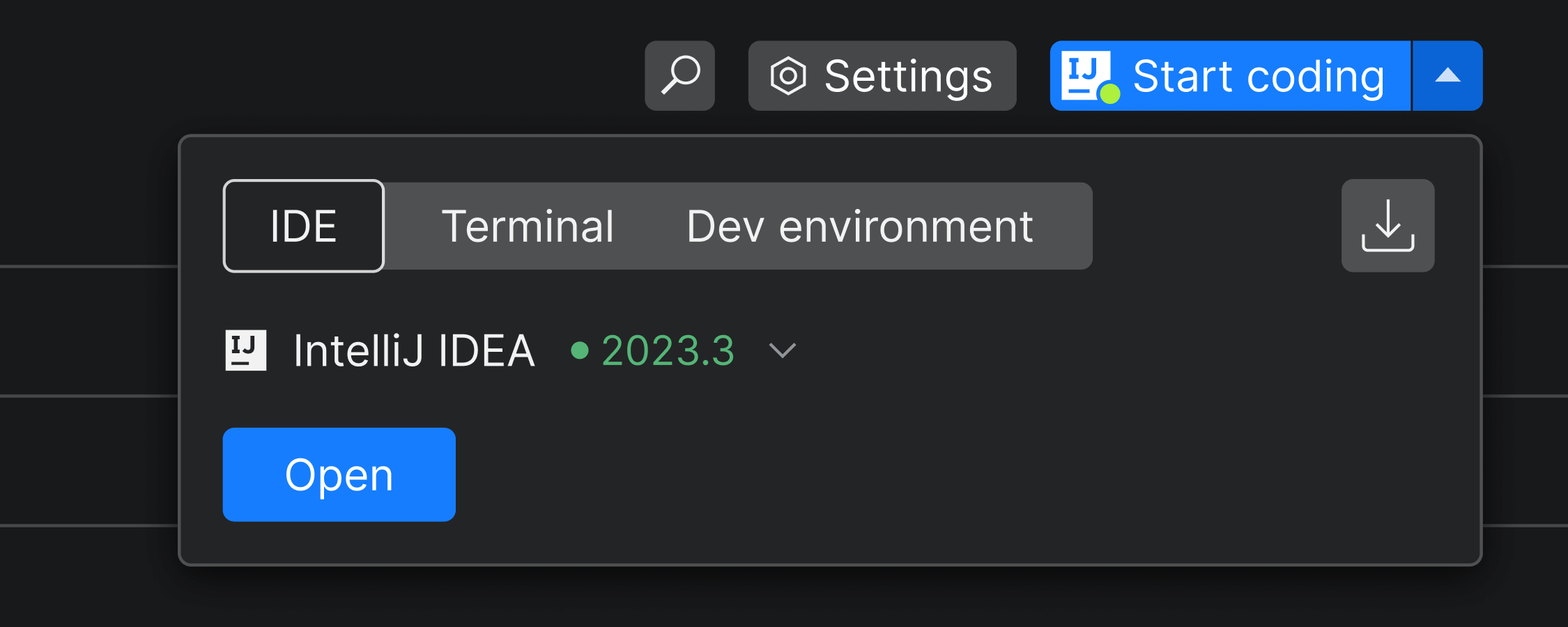通过 Start coding(开始编码)按钮,从 Space 中的仓库或代码审查导航到 IDE 中的相应文件。