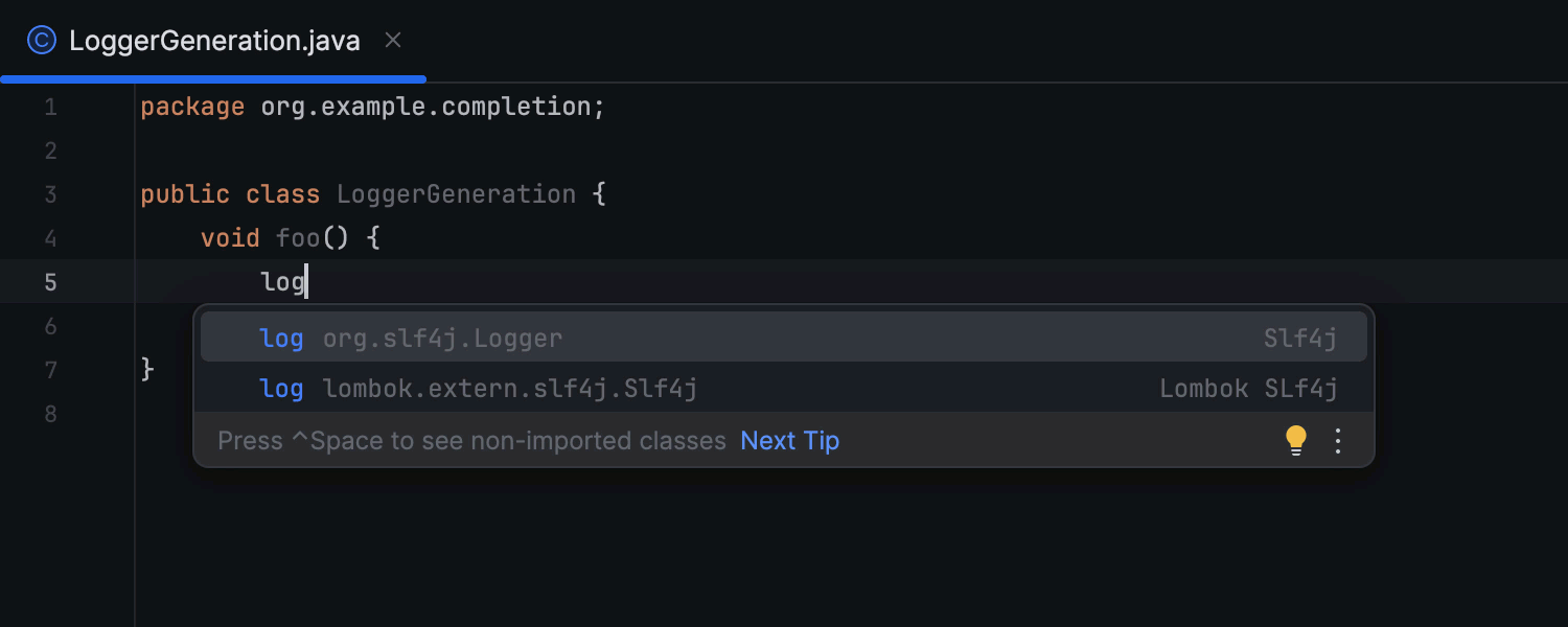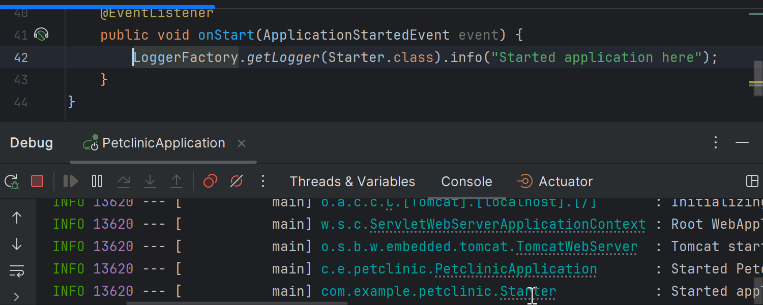 由于日志记录是日常开发的重要环节,我们引入了一系列更新来增强 IntelliJ IDEA 在日志方面的用户体验。 现在,您可以从控制台中的日志消息轻松导航到生成它们的代码。 此外,IDE 会在有需要的位置建议添加记录器,并简化插入记录器语句的操作,即使记录器实例不在作用域内。 在这篇博文中了解详情。
