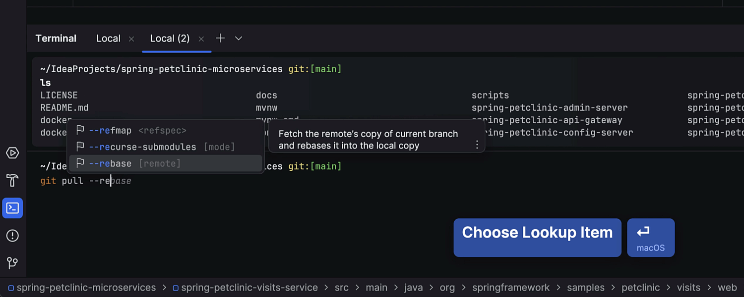 IntelliJ IDEA 2024.1 推出了重做的终端,具有可视化和功能增强,有助于简化命令行任务。 此更新为既有工具带来了全新的外观,命令被分为不同的块,扩展的功能集包括块间丝滑导航、命令补全和命令历史记录的轻松访问等。 在这篇博文中了解详情。