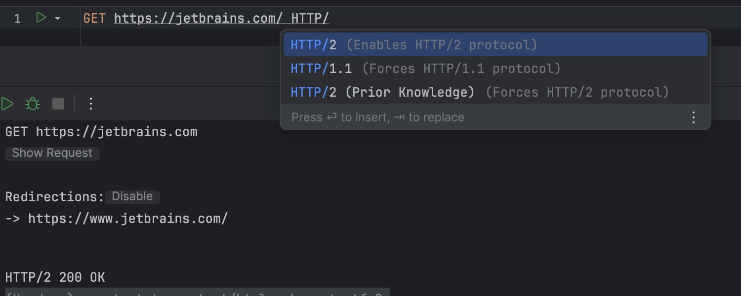 版本 2024.1 中的 HTTP 客户端提供了更多身份验证选项,包括 PKCE 授权代码和设备授予流。 除了在 PKCE 请求期间自动处理用于令牌检索的 code_challenge 生成和 code_verifier 传递之外,它还支持令牌和身份验证请求的额外参数。 HTTP 客户端升级为 Netty 的底层网络库实现了 SSL、代理和 HTTP/2 支持,有助于促进 HTTP/2 的实现。 此外,HTTP 客户端的工具栏已经过重做,与新 UI 的风格保持一致,提供更加美观协调的外观。