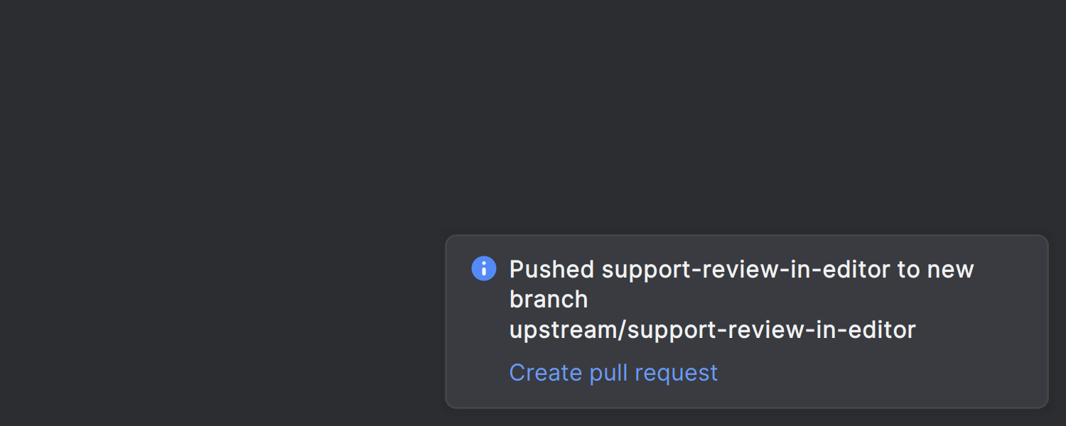 成功将更改推送到版本控制系统后,IDE 现在将发布一条通知,提醒您已成功推送并建议创建拉取/合并请求的操作。