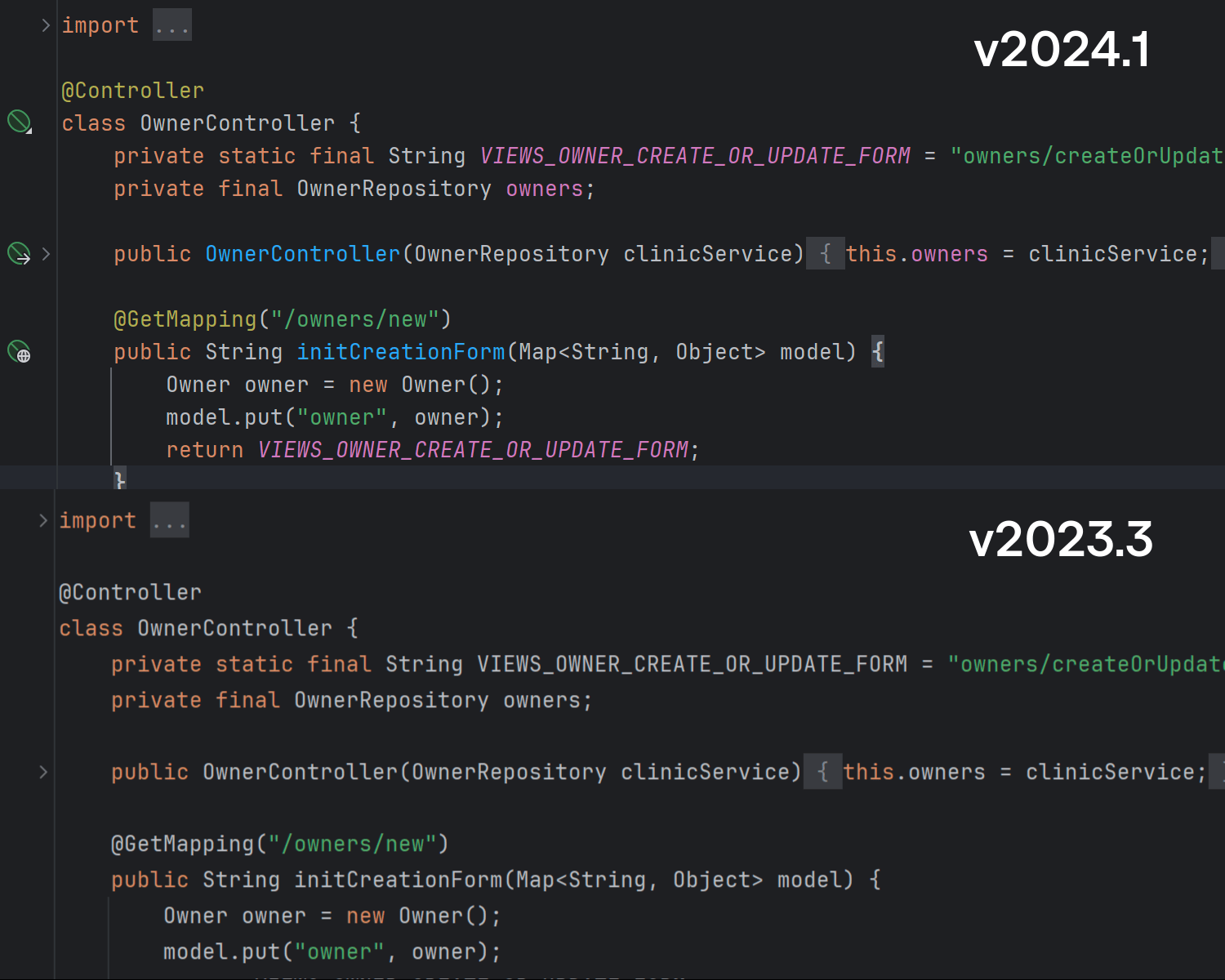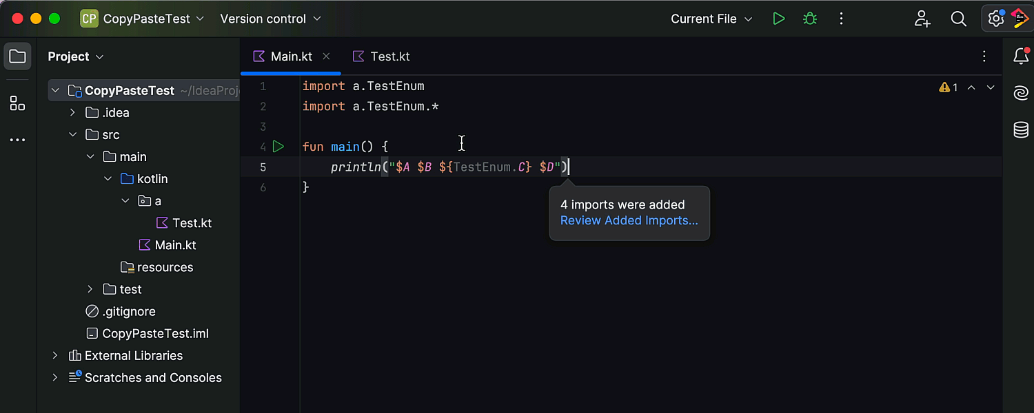 版本 2024.1 可以准确保留 static import,确保其传输完全遵循在源代码中的显示方式。 这在处理嵌套对象、枚举和 Java static import 时特别有价值。