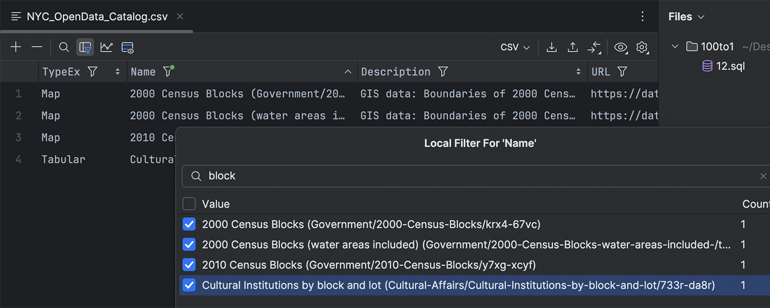 此版本在数据编辑器中引入了期待已久的本地筛选功能。 现在,您可以根据列值快速筛选行,而无需向数据库发送查询。 这种本地方式只影响当前页面,但如果需要扩大作用域,可以调整页面大小或提取所有数据。 要禁用所有本地筛选器,请取消选择指定的 Enable Local Filter(启用本地筛选器)图标。