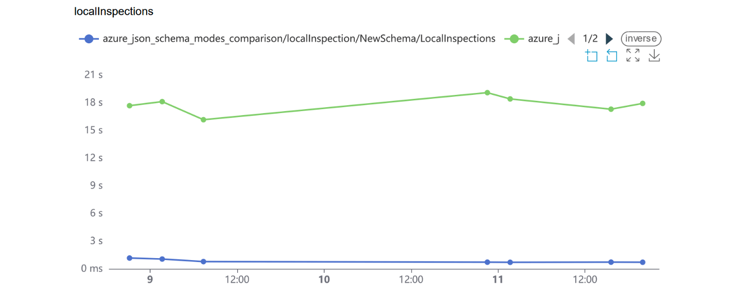 我们优化了 JSON 架构验证和补全背后的代码。 因此,IDE 现在可以更快处理这些任务并减少内存消耗。 在使用 Azure Pipelines 的现实文件中,架构检查速度现在提高了 10 倍。