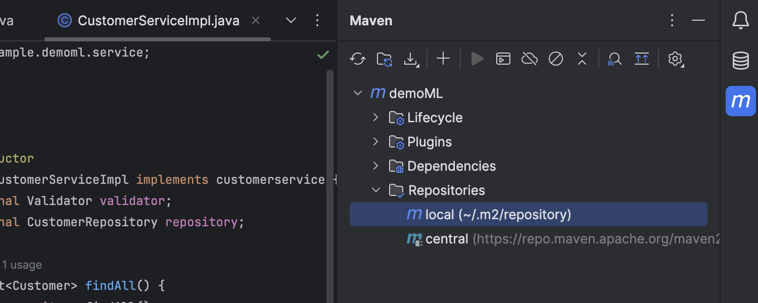 Maven 仓库列表及其索引编制状态现在显示在 Maven 工具窗口中,而不是以前 Maven 设置中的位置。