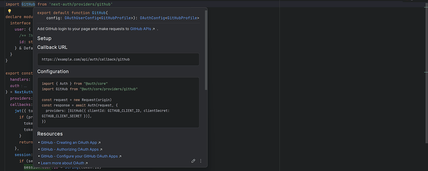 我们显著增强了快速文档弹出窗口。 它现在支持代码块的语法高亮显示。 在 TypeScript 中,它现在会显示接口成员、枚举常量和类型别名主体。 您可以使用 Show more(展开)链接展开类型成员的完整列表并导航到引用的类型。 此外,现在可以使用对话框顶部的分页控件在接口、类型别名、枚举、函数和其他实体的多个声明之间导航。