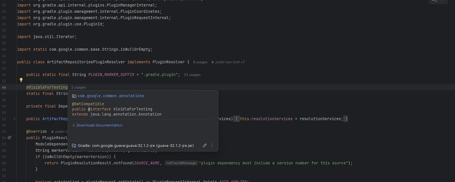 快速文档弹出窗口现在提供了一种下载源代码的简单方式。 现在,查看库或依赖项的文档并需要访问其源代码时,按 F1 即可。 更新后的弹出窗口将提供一个直接链接,您可以使用它来下载所需的源文件,简化了工作流。