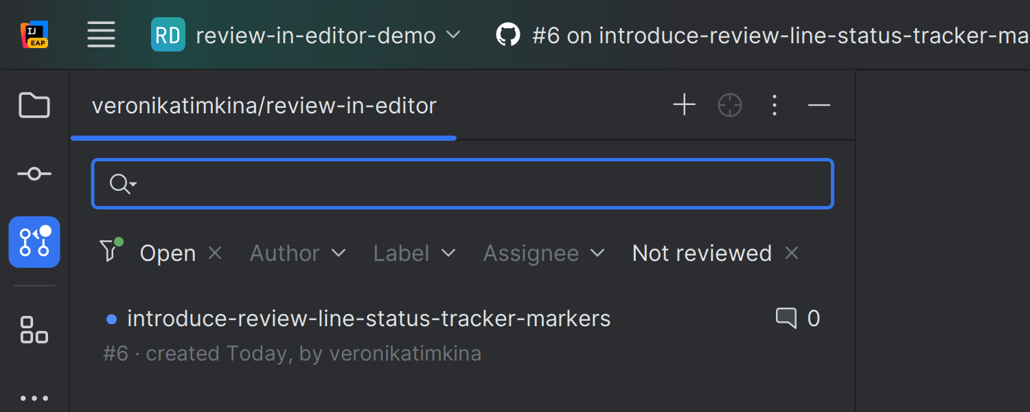 我们引入了可视化指示器来提示代码审查工作流中待处理的更新。 有需要您注意的更改时,工具窗口的图标上会出现一个点。 未查看的拉取请求也将用点标记,确保您不会错过代码审查流程中的更新。