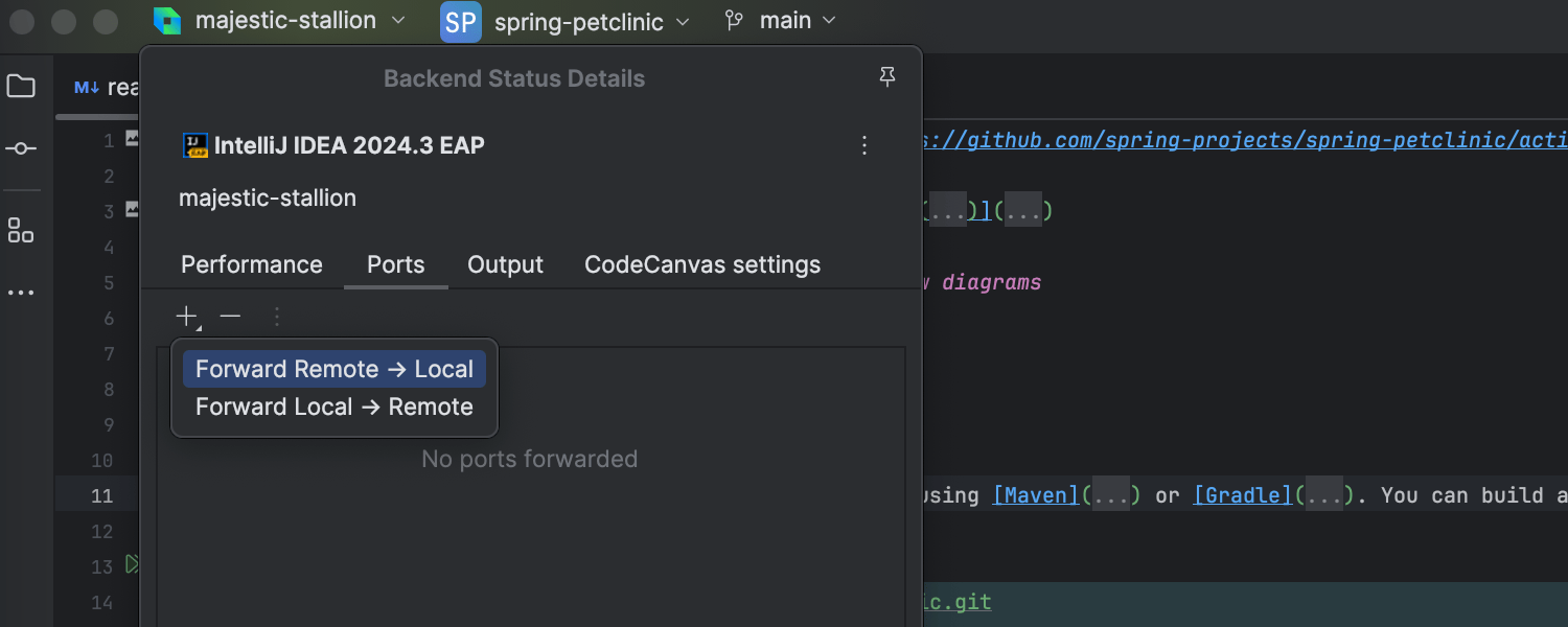 我们为远程开发工作流添加了反向端口转发。 这项新功能允许远程 IDE 连接到客户端计算机上可用的端口, 特别适合移动开发和连接到本地数据库。