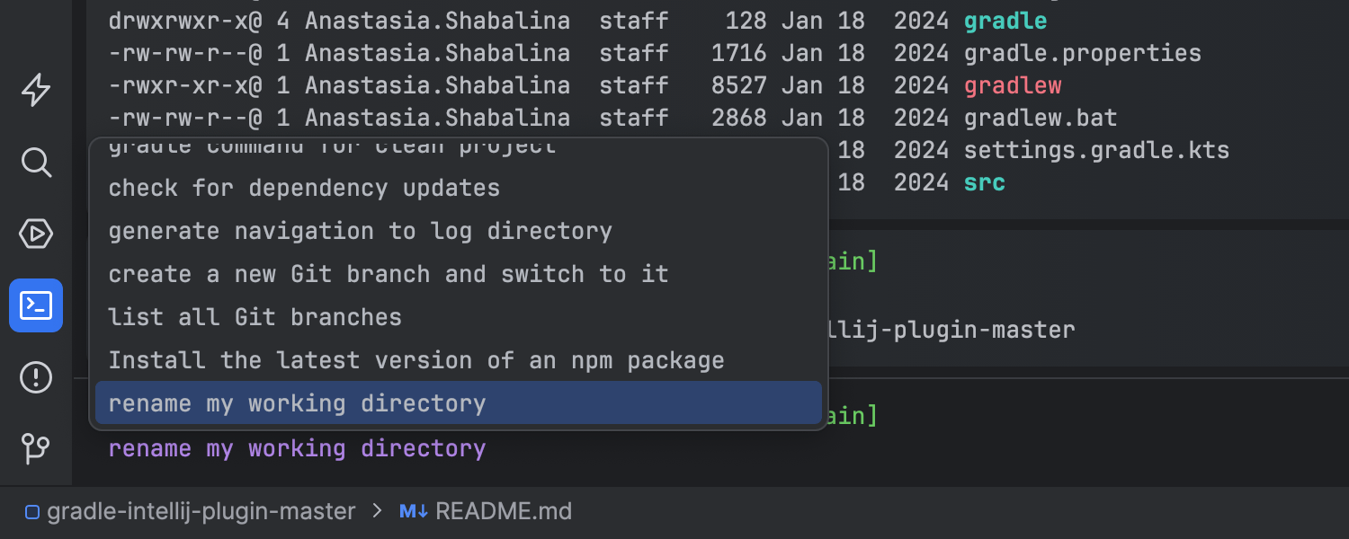 2024.2 版中的新终端引入了一些可以增强功能和用户体验的更新。 主要改进包括 AI 赋能的命令生成,允许您用自然语言描述命令,并让 AI 为您创建该命令。 此外,您现在可以在单行或双行设置之间进行选择,以更好地利用空间或提高可读性,并且现在支持自定义 shell 提示设置。 最后,针对 Git 别名与分支、npm 软件包、PHP 命令和 Ruby CLI 增强了命令补全。