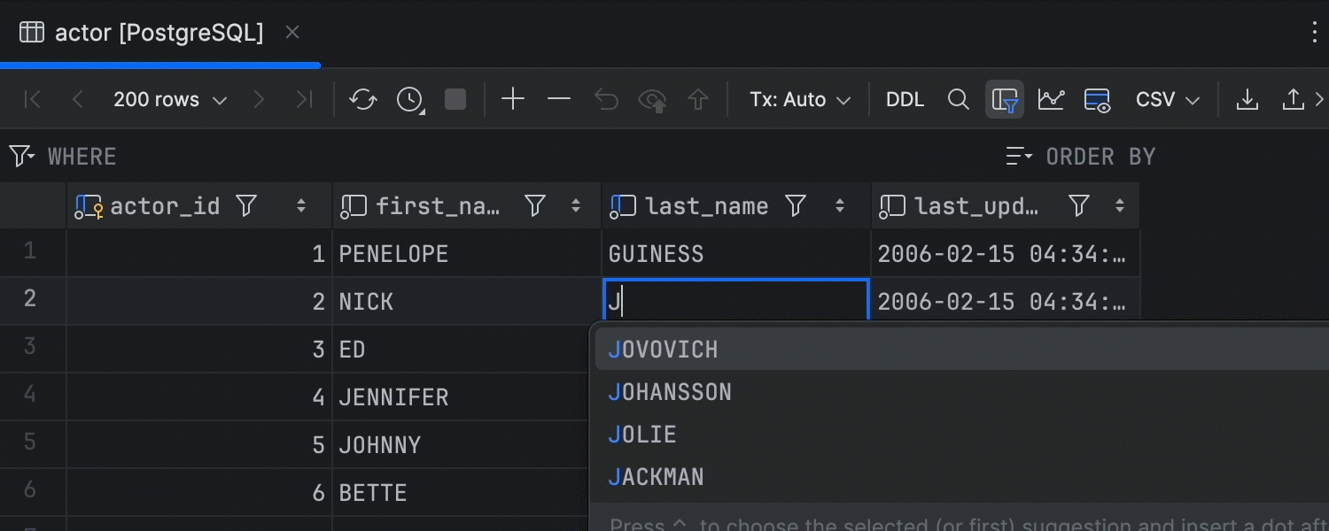 我们已经使值补全(一个存在很久的功能)自动化,并且我们的性能测试显示出乐观的结果。 请记住,此功能完全在本地运行,因此补全变体基于当前列中已加载的其他值。