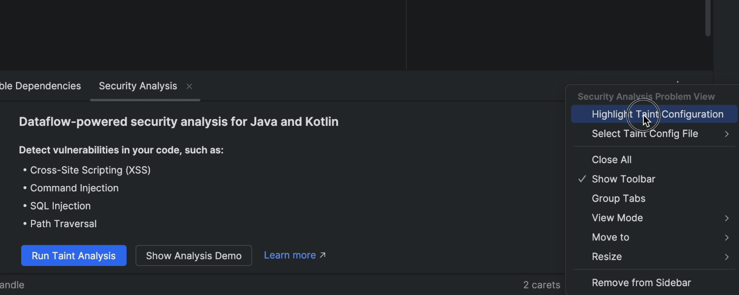 要试用,请访问 Problems(问题)视图,打开 Security Analysis(安全分析)标签页,然后安装 Security Analysis by Qodana 插件,该插件对 IntelliJ IDEA Ultimate 用户免费。