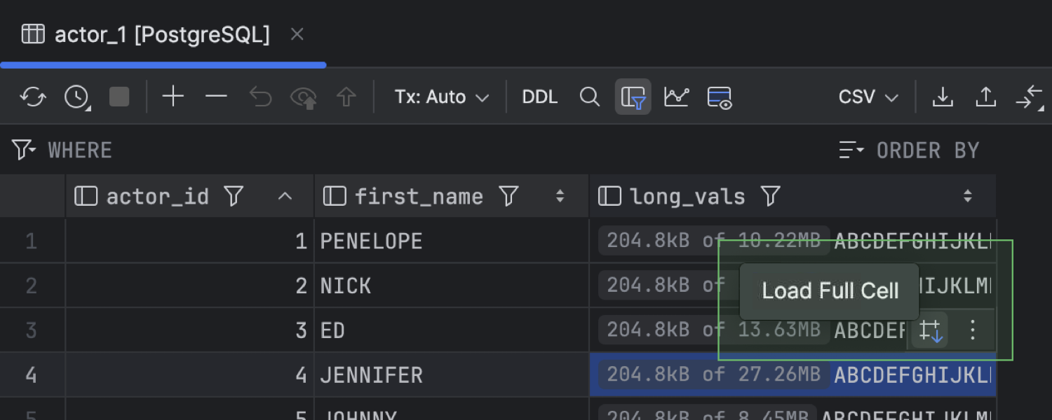 现在有一个设置可以限制每个单元中加载的数据量。 此选项旨在提高处理大型表时的性能,允许您决定要部分还是全部加载单元。