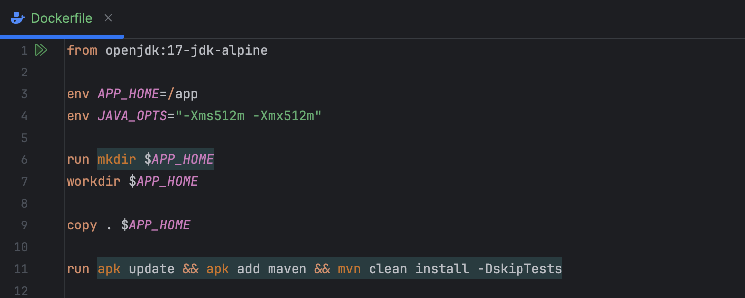 IntelliJ IDEA 2025.1 允许您在传统的大写字母之外,使用小写字母编写指令。 以前,IDE 将 FROM、RUN 和 COPY 等命令识别为 Dockerfile 指令。 现在,您还可以自由使用小写的 from、run 和 copy 来适应特定的命令、插件、公司标准或个人偏好。