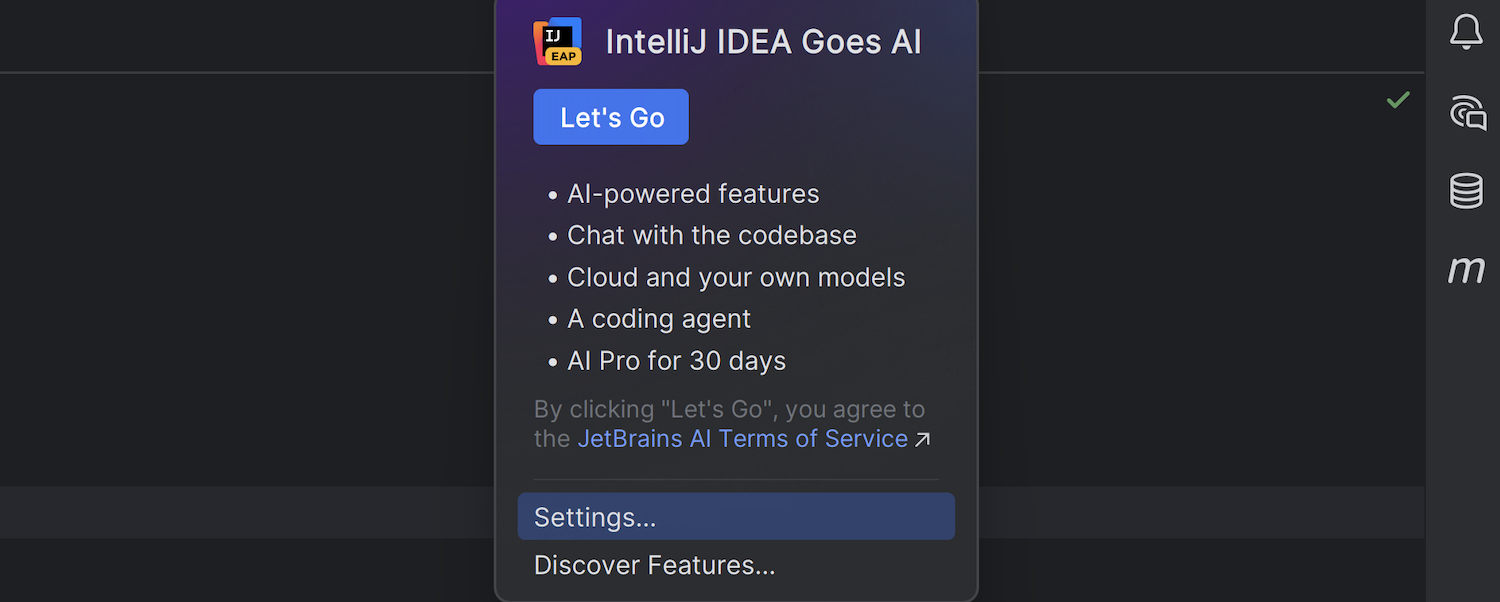 JetBrains AI 进行了重大升级,将 AI Assistant 与 Junie 合并到一个订阅下。 在此版本中,所有 JetBrains AI 功能在 IDE 中免费提供,其中一些功能可以不受限制地使用,例如无限制代码补全和本地模型支持,而其他功能则基于点数限制访问。 我们还推出了新的订阅系统,您可以根据需要轻松扩展到 AI Pro 和 AI Ultimate 层级。