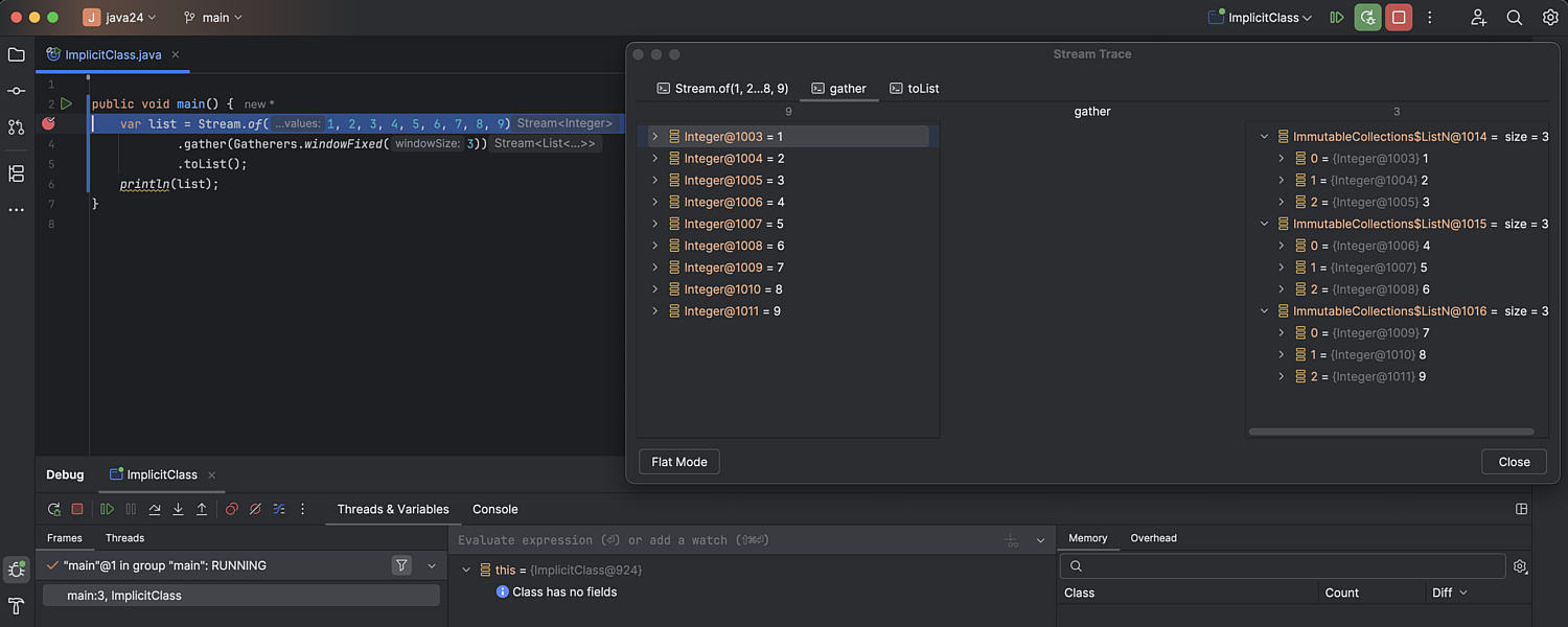 2025.1 版本全面支持最新 Java 24 版本中的所有功能,确保最新语言更新的无缝体验。 流收集器现已成为稳定功能,已集成到流调试工作流中。 所有其他功能,无论是实验性、预览版还是最终版,都同样受到支持,可以在项目中使用。 了解详情。