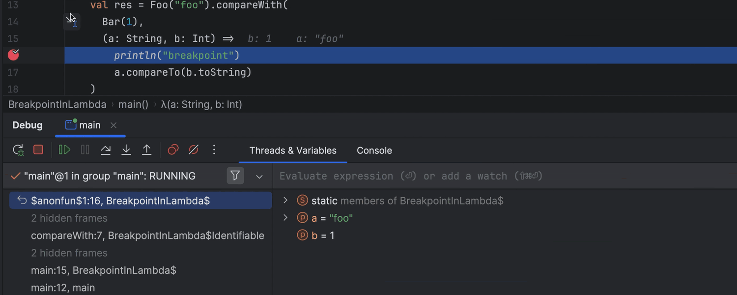 调试器不再遇到在特征中 lambda 内的断点处和 try…catch 块中 lazy val 内的断点处停止的问题。