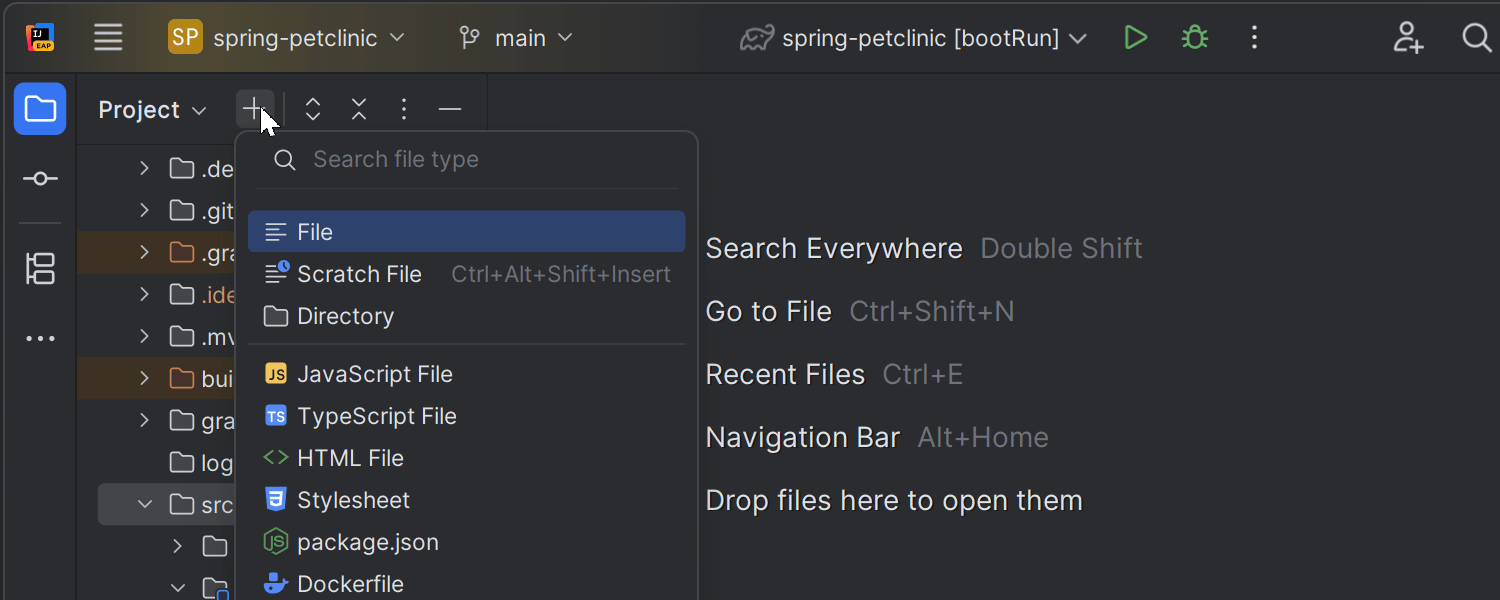 创建新文件现在更加方便。 您可以通过 + 图标直接从 Project(项目)窗口工具栏访问列出可用文件模板的弹出窗口,搜索字段可让您快速筛选并找到所需文件类型。