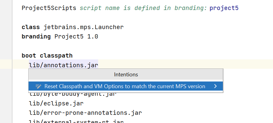 新增意图更新了 MPSStartupScript 节点,并将虚拟机选项和类路径值设为当前 MPS 值。 MPS 虚拟机选项和类路径值随每个新版本而变化。 此前,用户必须为独立 IDE 手动更新构建项目。
