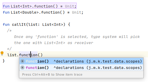 作用域中的扩展函数已更改为不排除作用域中的兼容方法。 代价是,由于当前类型系统实现的性能,作用域内的一些条目不适用。