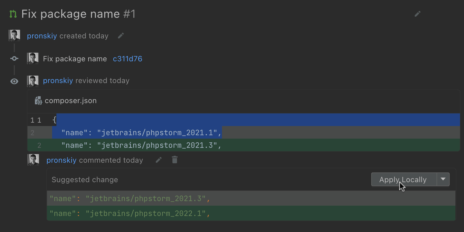 现在您可以直接在 PhpStorm 中本地应用或提交更改,更轻松地处理建议的更改。