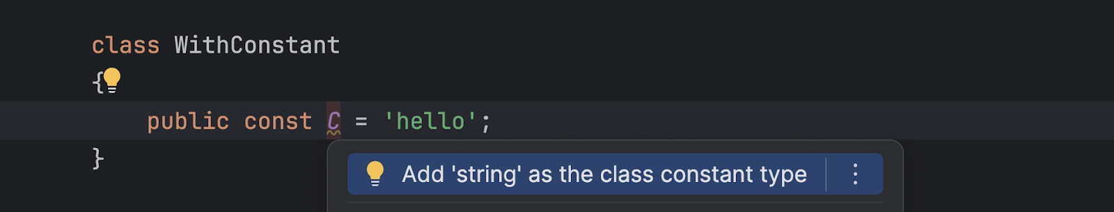 在 PHP 8.3 中,您可以声明类常量的类型。 除 void、callable 和 never 之外的所有类型声明都可以使用。
