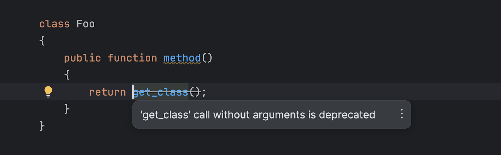 PHP 8.3 弃用了一定内容,PhpStorm 为您提供了相应的检查来发现它们。