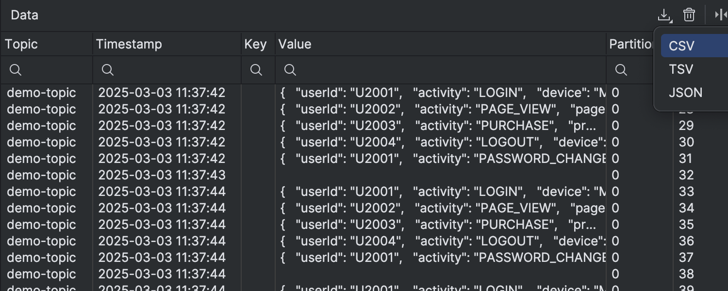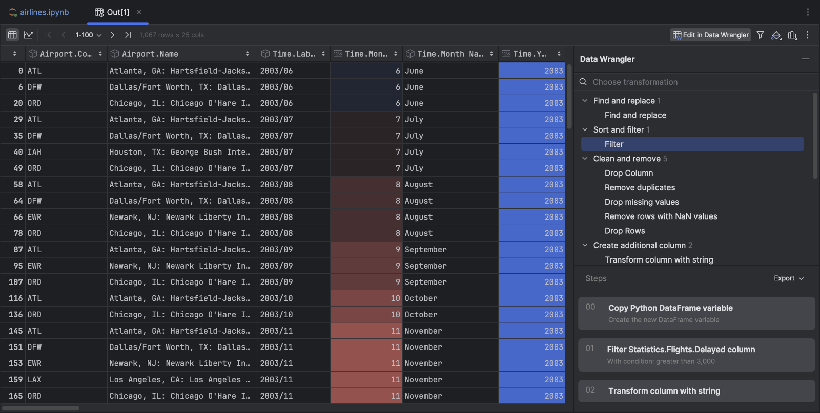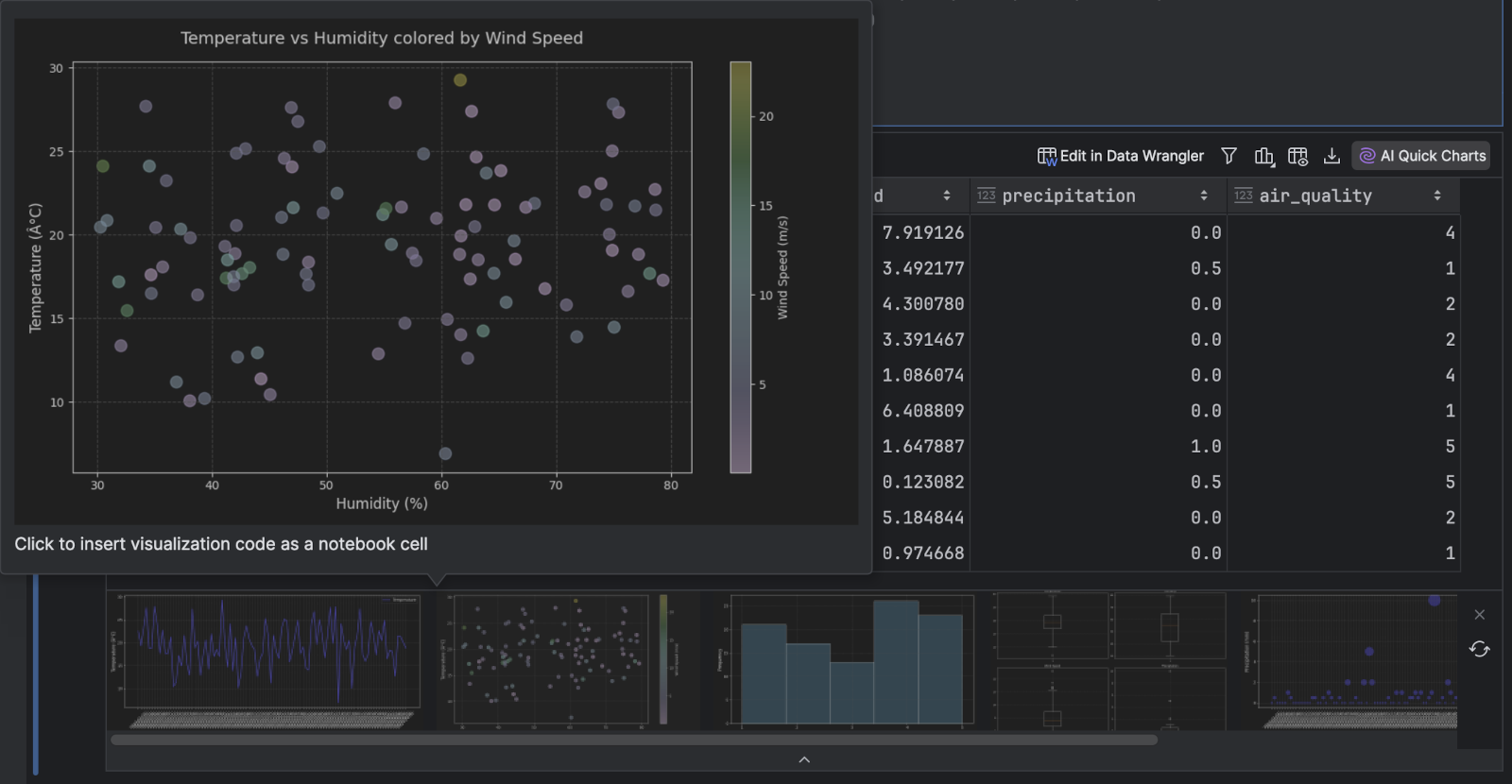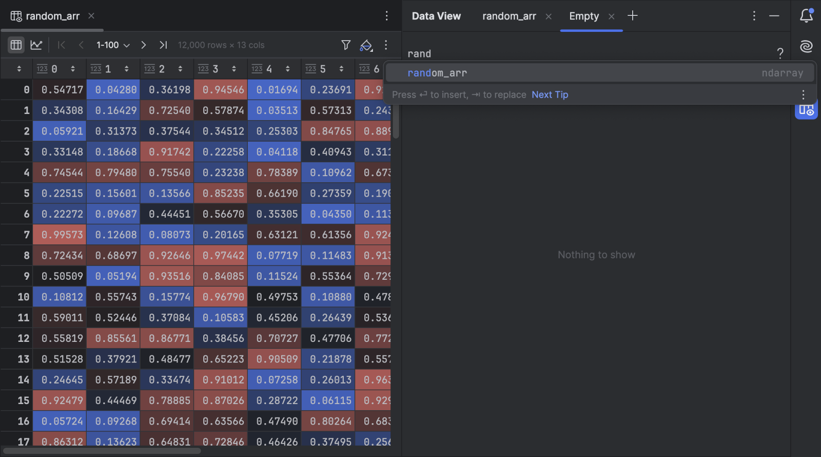 您还可以直接在交互式表内对数据进行筛选、排序和探索,或在 Data View(数据视图)工具窗口中打开大型数据集。