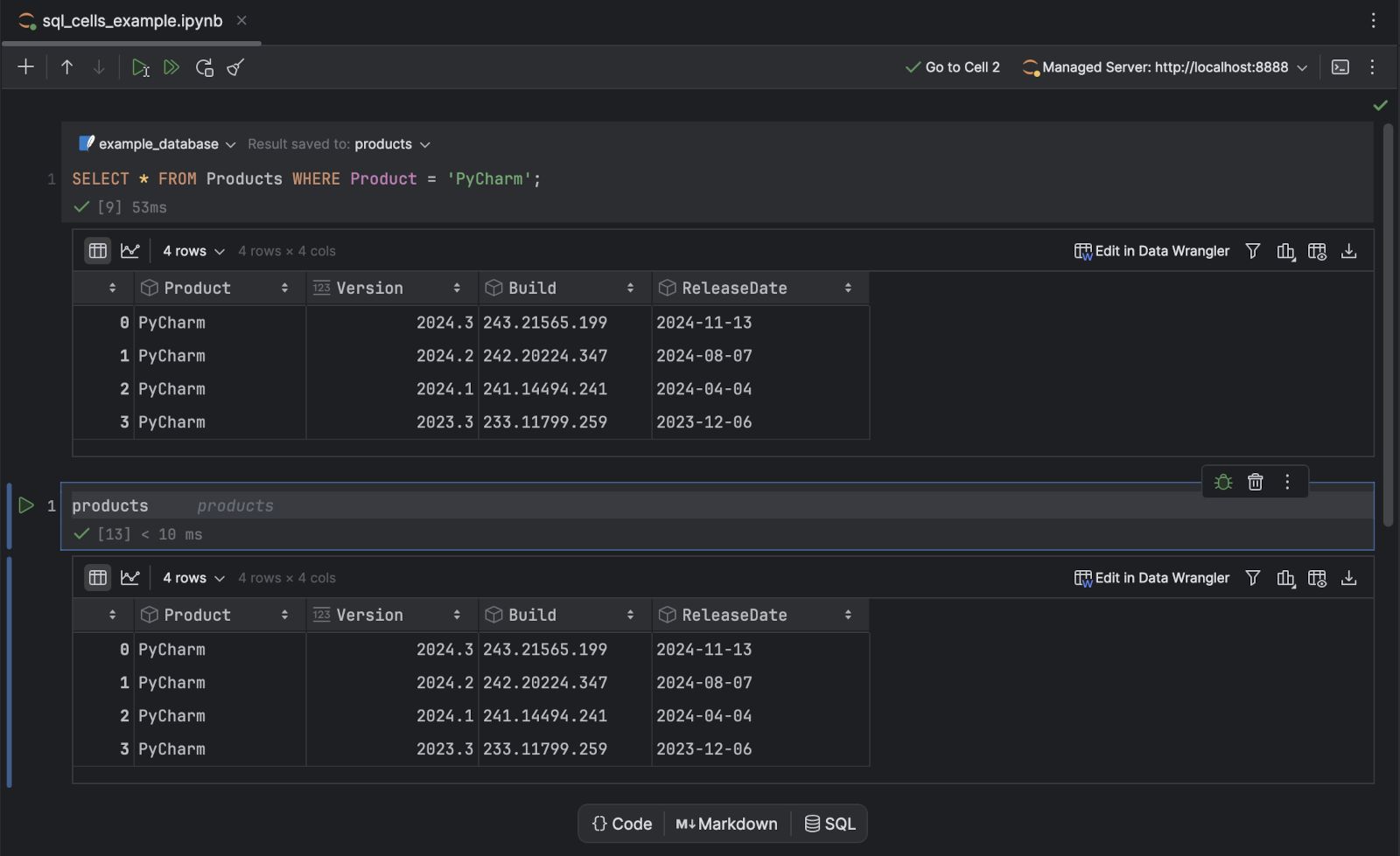 PyCharm 中的所有数据库功能均由 DataGrip 引擎提供支持。 有关所有这些功能的完整详细信息,请查阅 DataGrip 2025.3 版本说明。