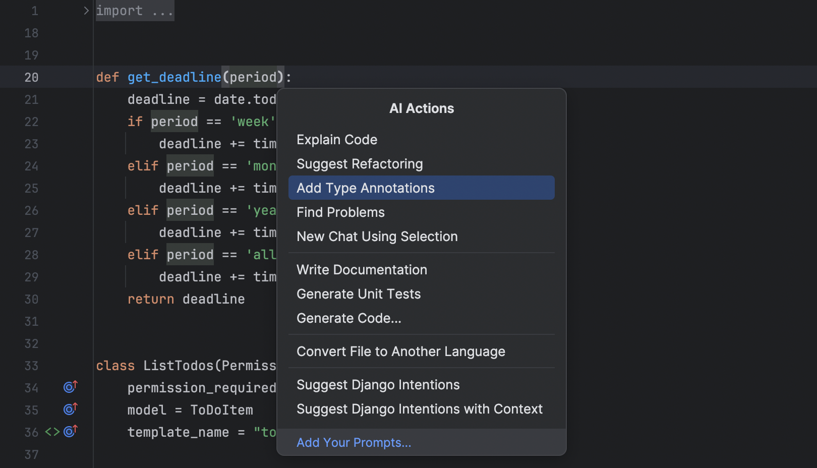 使用类型注解函数可能相当麻烦。 将类型注解的起草工作委托给 AI Assistant,节省时间和精力。