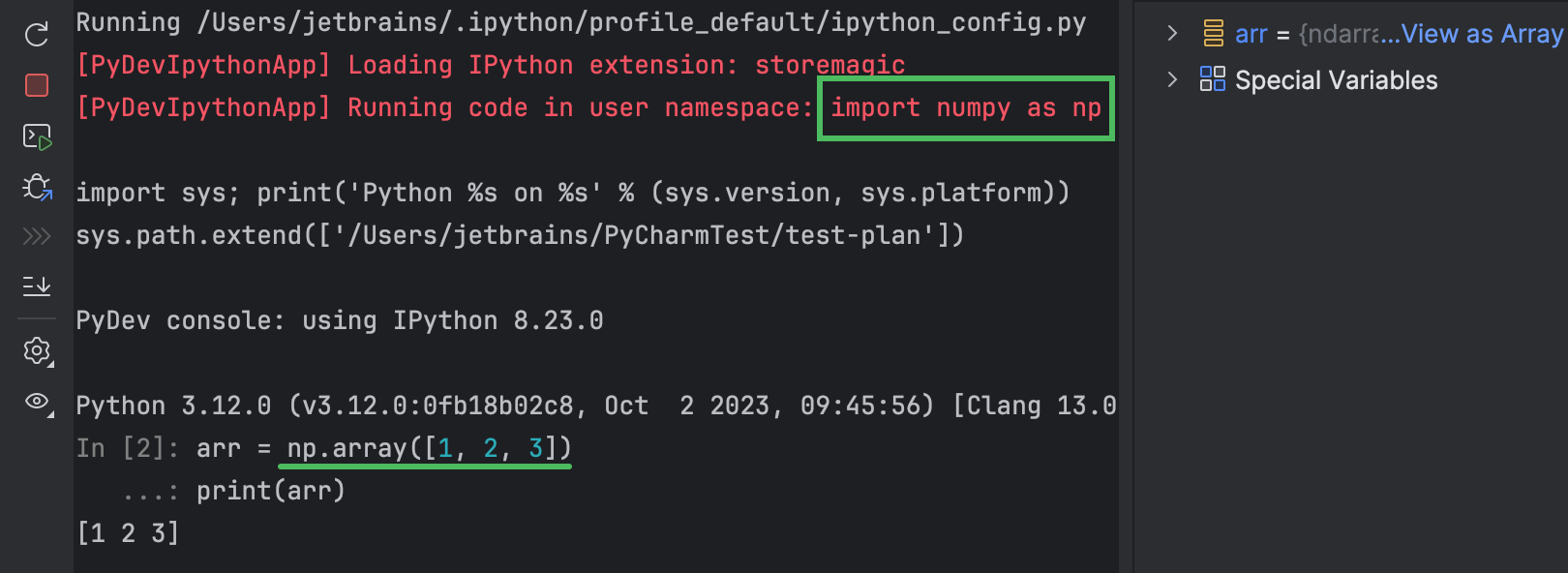 在 PyCharm 中,您现在可以使用配置文件自动配置 IPython 控制台。 例如,这可以让您不必每次使用时都手动导入依赖项。