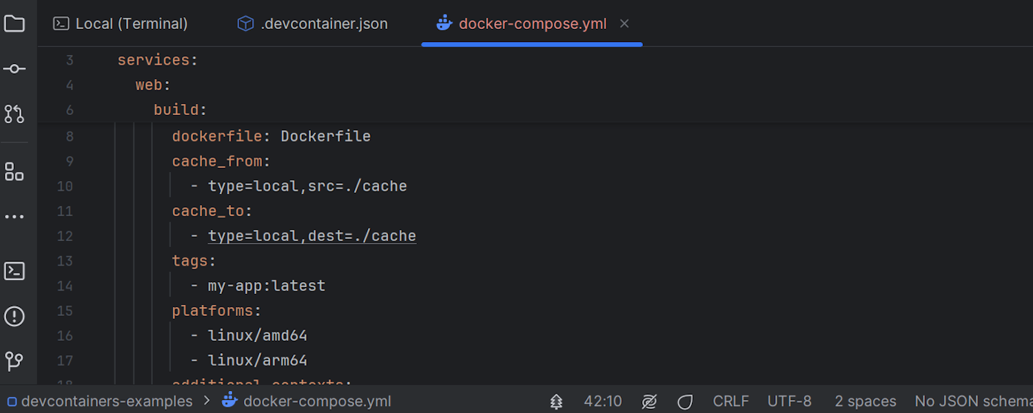 PyCharm 2024.3 为 Docker Compose 提供了扩展支持。 现在,它在 env_file 自动补全中优先考虑 .env 文件,使环境设置更快。 cache_to、no_cache、tags 和 <0>platforms0> 这些新的构建选项提供了对缓存和平台定位的更大控制。 depends_on.required 和 depends_on.restart 的增强处理可以更有效地管理依赖容器的启动和关闭顺序。