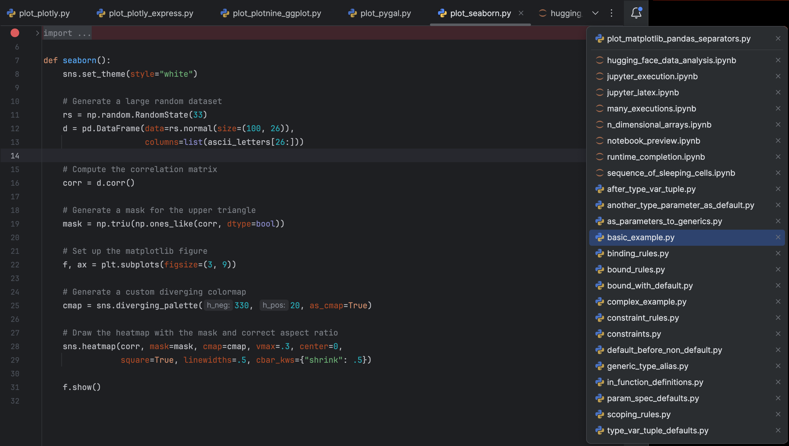 PyCharm 现在默认自动高亮显示您在文件中选择的文本的所有实例。 这使得跟踪所选文本在整个代码中出现的位置更加简单。 您可以在 Settings | Editor | General | Appearance(设置 | 编辑器 | 常规 | 外观)中自定义功能。