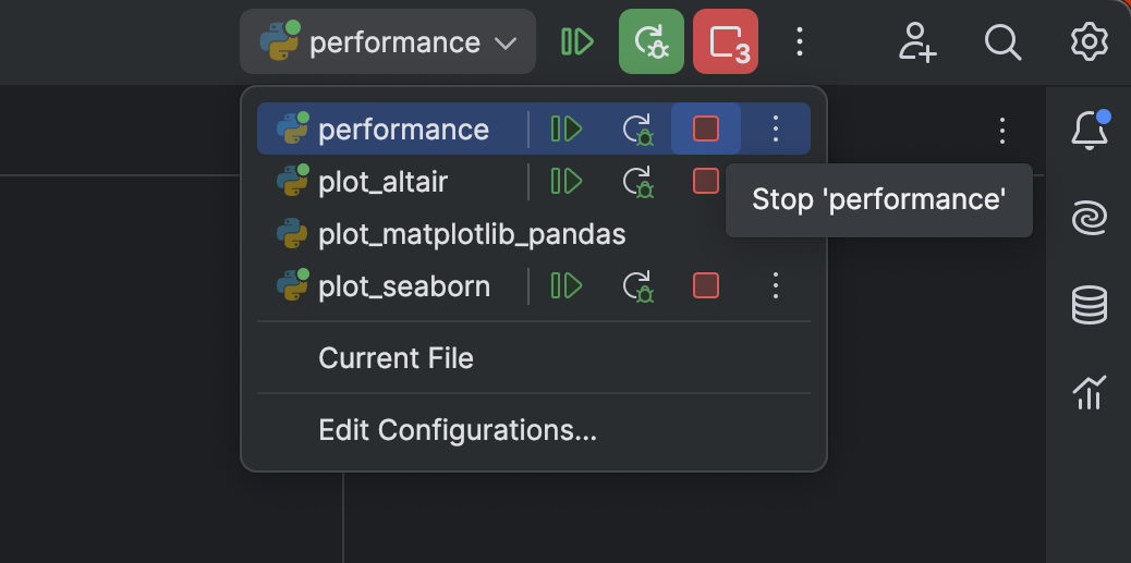 更新后的 Run(运行)微件可让您按住 Ctrl 并点击弹出窗口中的 Debug(调试)图标同时启动多个配置。 另外,此微件还会显示所有运行中配置的控件,提供清晰的状态概览并简化管理。