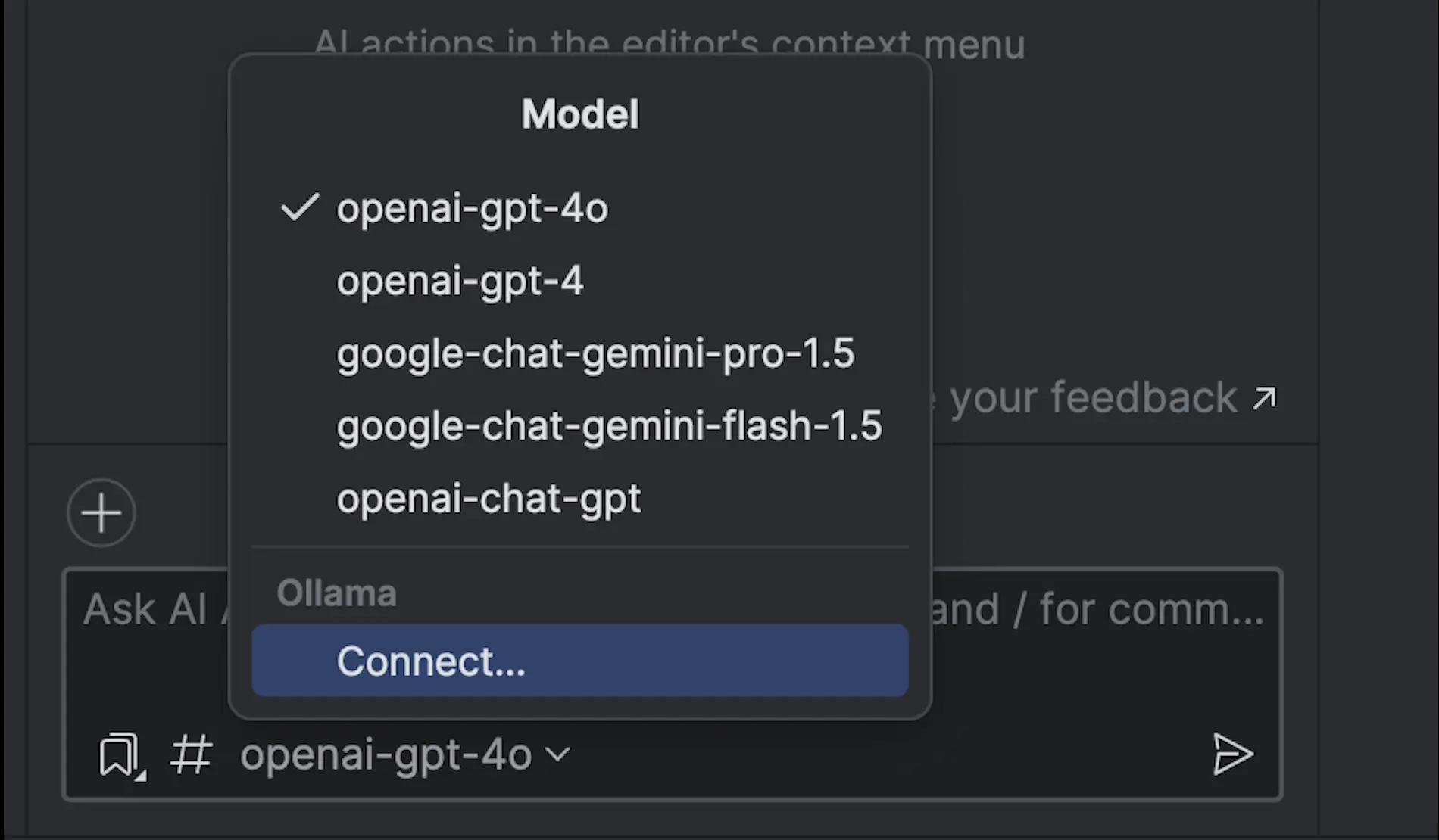 现在,您可以选择自己喜欢的 AI 聊天模型,例如 Google Gemini、OpenAI 或您机器上的本地模型。 有了更多选择,您可以自定义 AI 聊天的响应以适合您的具体工作流,享受适应性更强的个性化体验。
