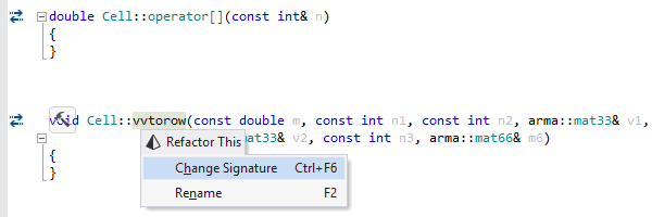 Change Signature 重构允许您对函数签名应用一个或多个更改。 函数的所有用法、实现和重写均会相应地更新。