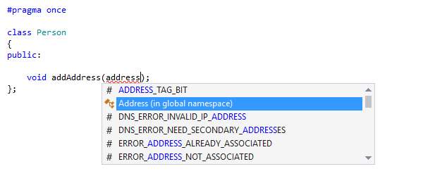 代码补全甚至能够建议尚未包含在当前文件中的符号。 当您在补全列表中选择这样的符号时,将自动添加相应的 #include 指令。