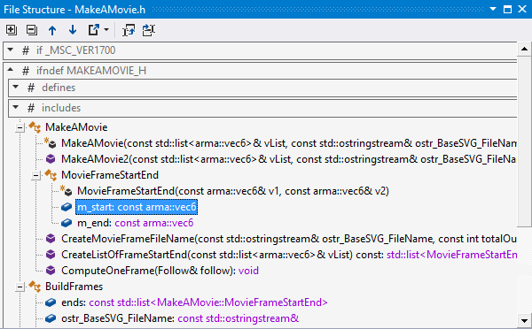 借助 ReSharper C++,您可以使用 File Structure 窗口查看当前文档的结构,这会大大简化在大文件中的导航操作。